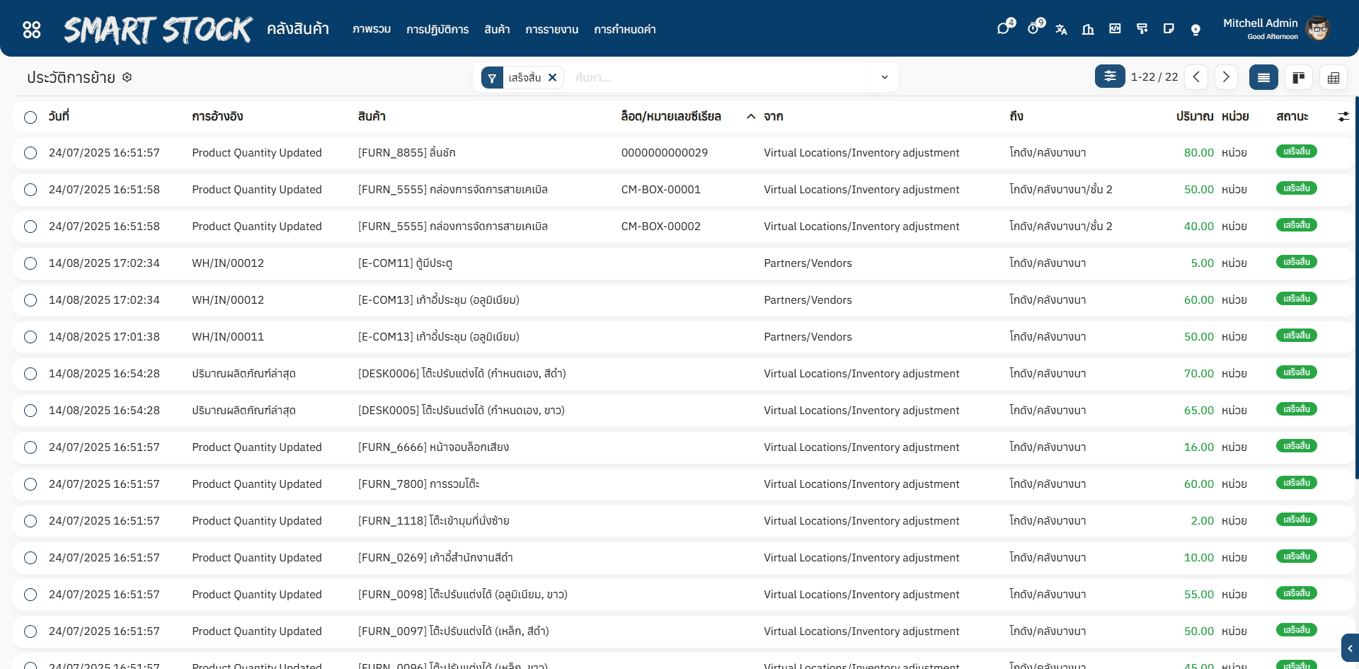 รายงานประวัติการเคลื่อนไหวสินค้า (Stock Move History)